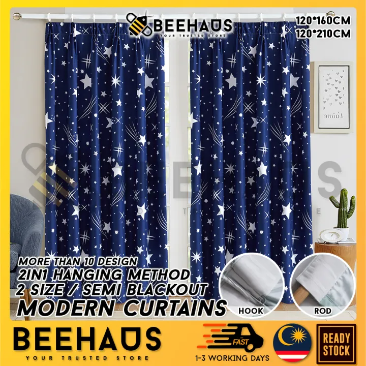 Beehaus Modern Curtain 2in1 Hanging Method Semi Blackout Hook Type Door Window Curtain Langsir Tingkap Langsir Pintu Langsir Dapur Lazada